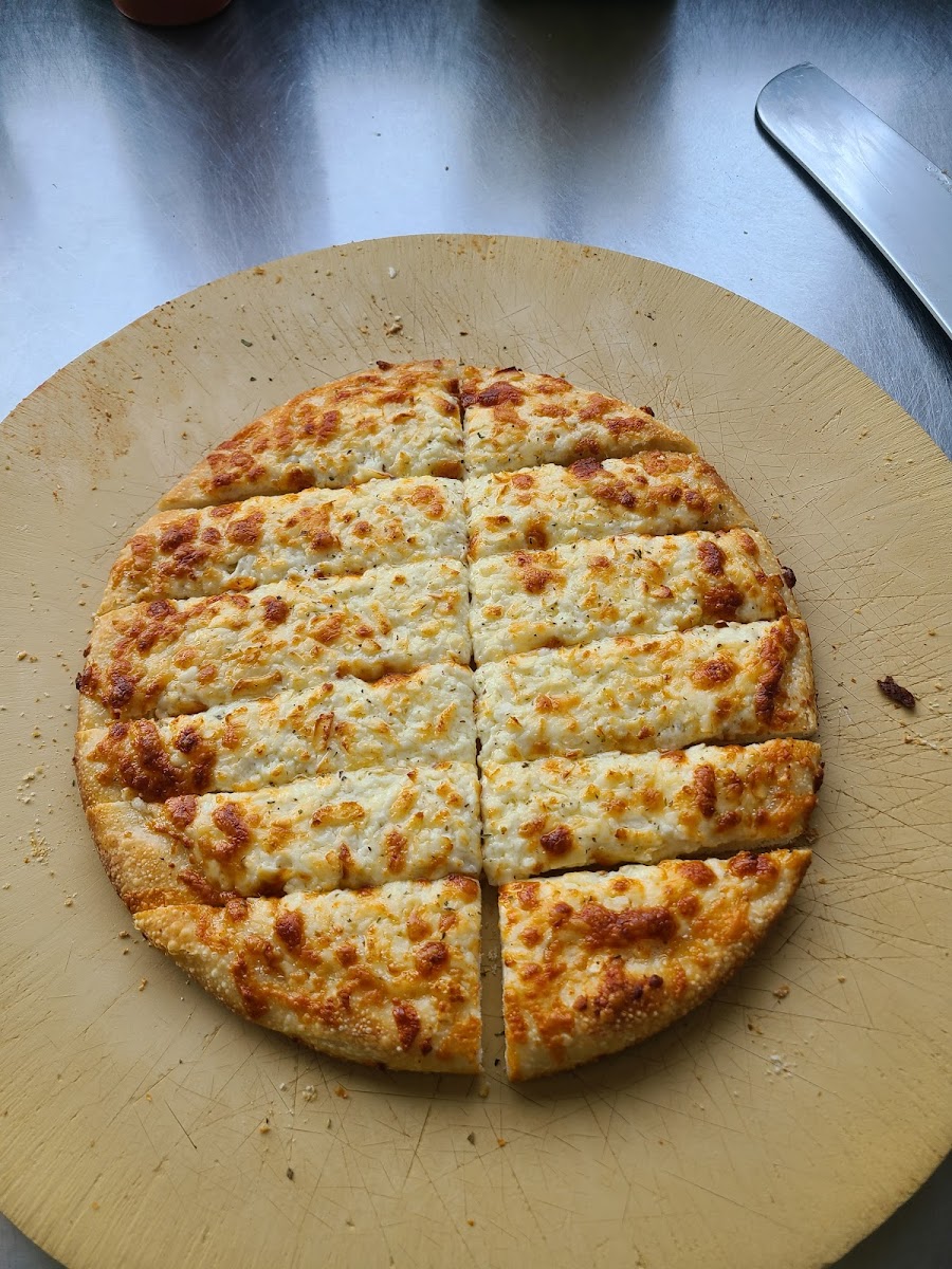 Was passing through town and grabbed a pizza from this place because it has the highest Google rating. The Pizza was good but who cuts a pizza like this?? Such a mess and has a piece in the middle that I had to hold onto the toppings... Terrible idea whoever decided that was a good way to cut pizza.